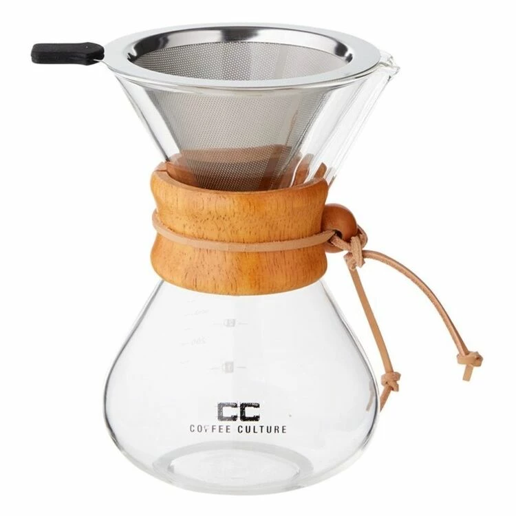 Made from heat resistant borosilicate glass, comfortable to withstand temperatures up to 300°CStainless steel micro mesh filter to ensure your coffee is smooth and free of any sedimentsWooden sleeve for easy grip while pouring