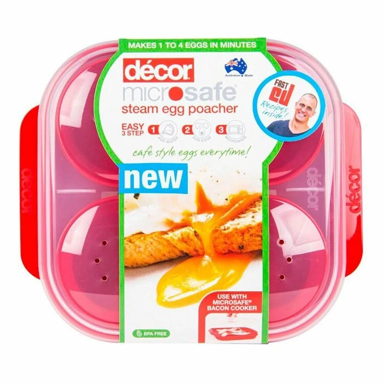 With the Microsafe® Steam Egg Poacher you can now make perfectly poached, cafe style eggs in your microwave in just minutes! The unique water bath base suspends the egg cups in 360 degrees of water, gently poaching your eggs and preventing them from drying out. Make just one or up to four eggs at a time. Clean-up is quick and easy as all parts are dishwasher safe. From eggs on toast, to burgers, Caesar salad and delicious pastas, enjoy eggs poached perfectly to your liking every time with ease. Use with the Microsafe® Bacon Cooker for a complete meal in minutes.