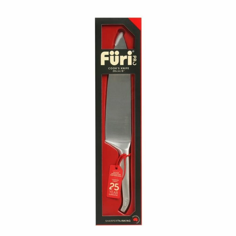 Complete your kitchen with the Furi Pro Cooks Knife 20cm, skilfully crafted from Japanese stainless steel. The workhorse in restaurants, this knife is the chef’s classic companion for chopping and cutting meats whilst making light work of even the toughest of vegetables.