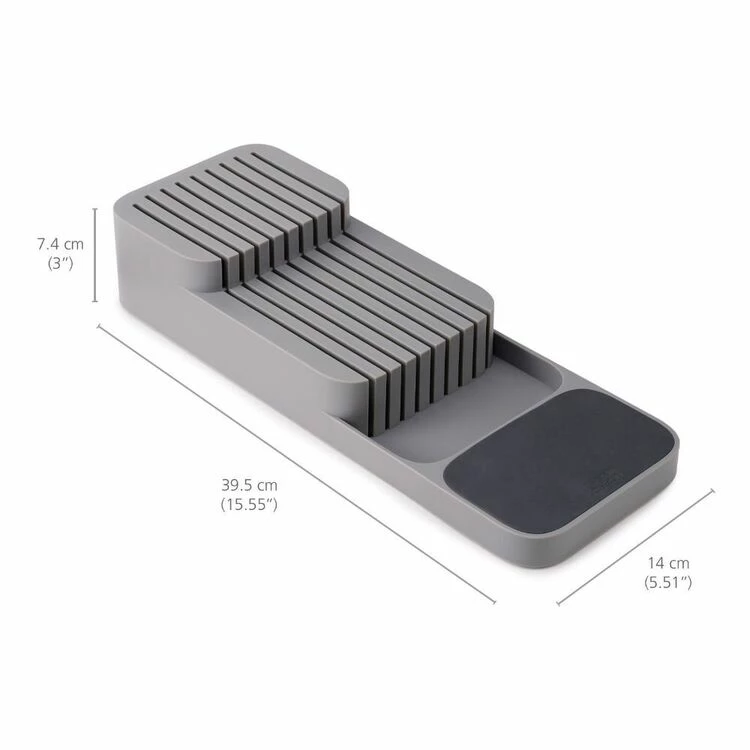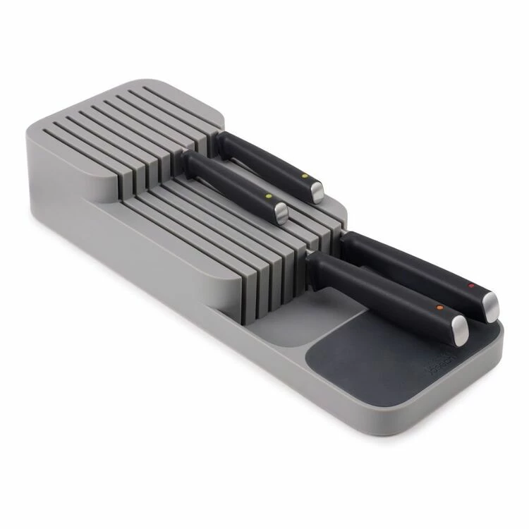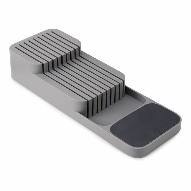 The Joseph & Joseph Drawerstore Compact Knife Organiser makes storage and organisation a breeze. This innovative product provides safe, organised storage for up to 9 knives. Featuring a space-efficient 2-tier design, the upper tier is designed for storing small knives and the lower tier for large knives – with each tier being able to store knives with blade lengths up to 9 inches (23 cm).