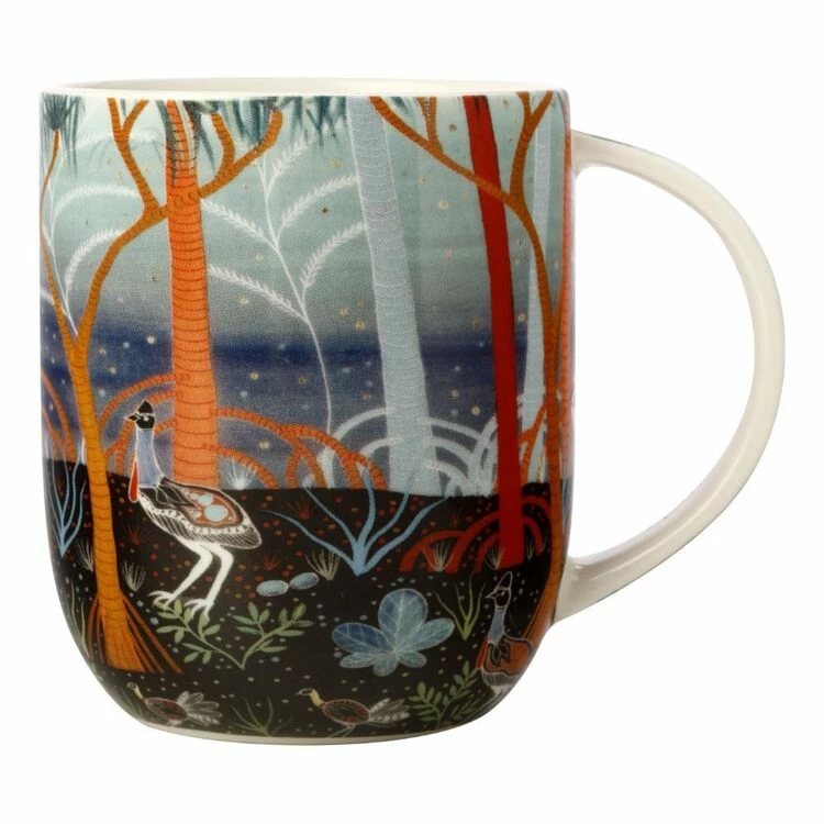 The Maxwell & Williams Melanie Hava Jugaig-Bana-Wabu Mug 440mL Cassowaries mug from the Jagaig-Bana-Wabu (Earth-Water-Rainforest) collection features an original design by Australian artist Melanie Hava. Hava’s Aboriginal and Austrian heritage influence her artwork, with inspiration taken from both the reef and rainforest country of Far North Queensland and Austrian architecture and artists like Gustav Klimt. Each design in the range showcases a stunning combination of flora, fauna and landscapes in a vibrant colour palette.