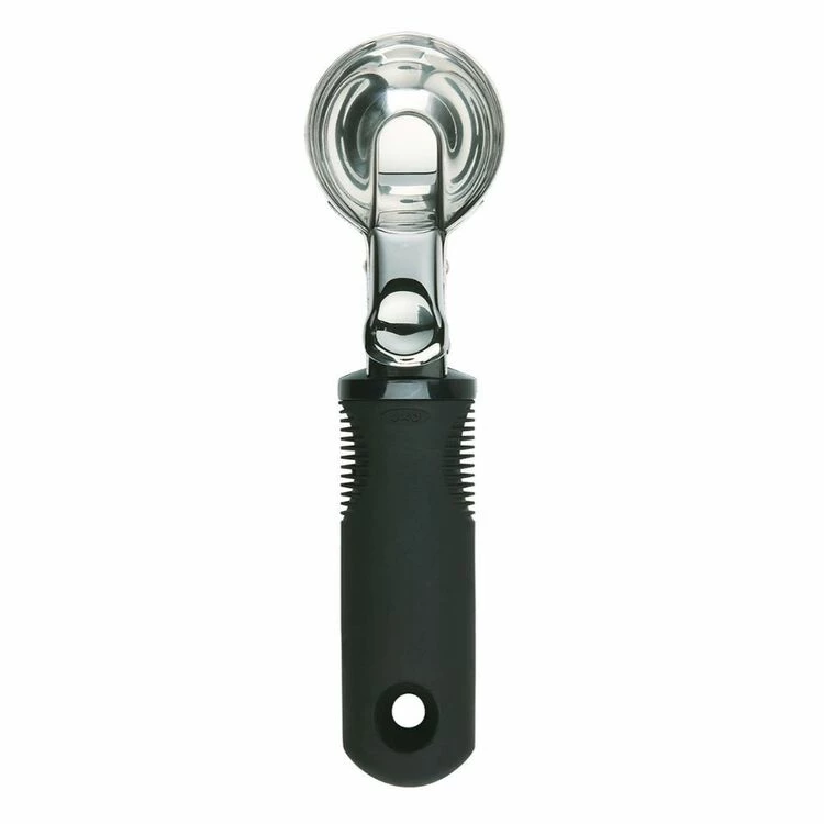 The OXO Good Grips Ice Cream Scoop’s sturdy stainless steel head scoops your favourite ice cream, sorbet, or sherbet, and the pop-up lever pops it out onto a cone or dish. The soft, non-slip handle relieves pressure on your hand, especially when scooping hard ice cream.