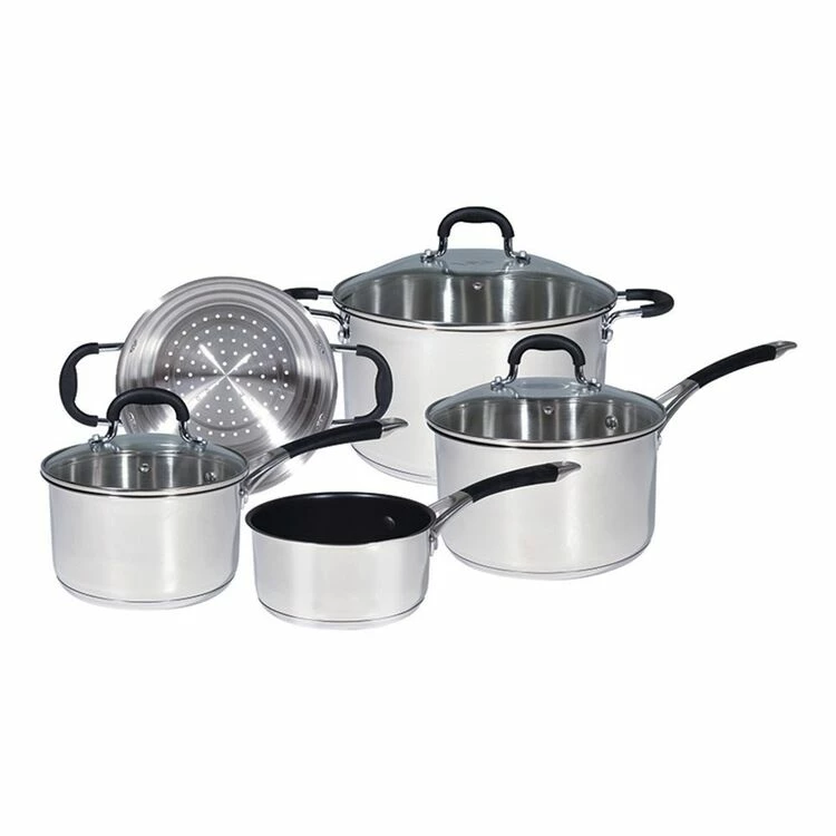 | Contents | 1 x 14cm non-stick milk pan1 x 16cm saucepan with lid1 x 20cm saucepan with lid1 x 24cm casserole with lid1 x 20cm steamer insert |