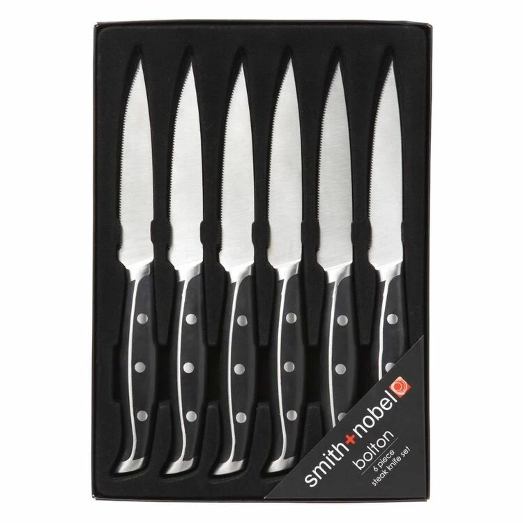 Enjoy delicious meal after delicious meal with these Smith & Nobel Steak Knives. Its stainless steel body paired with dark black handles for comfort and a sleek design is a must have for any modern home. Smith & Nobel cutlery is made from high quality stainless steel which will retain its shine, shape and ease of use for years to come.