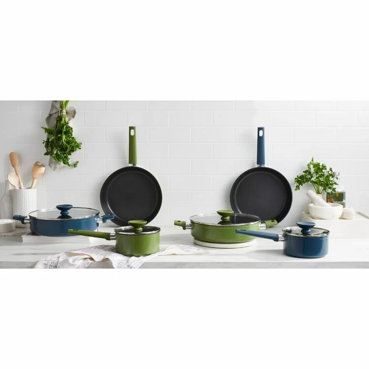 Cook up a meal with style with the Smith & Nobel Forged Aluminum Blue 3 Piece Cookset. This 3 piece cook set has all you need to whip up some food while looking stylish. Its flat uniform design not only gives it a clean and modern design but also helps to cook food more evenly and makes them easy to store