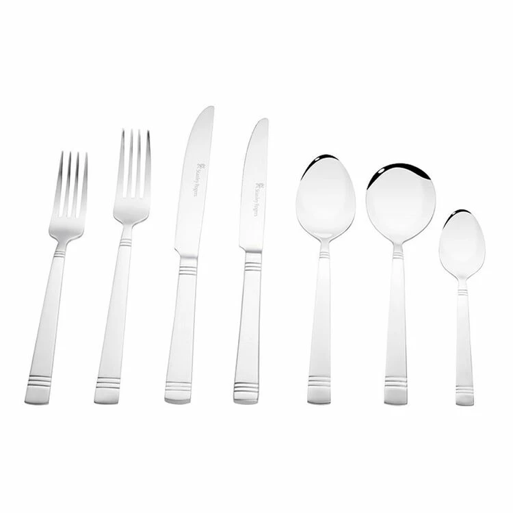 Set contains formal place setting for eight: 8 Dinner Knives, 8 Dinner Forks, 8 Entree Knives, 8 Entree Fork, 8 Dessert Spoons, 8 Soup Spoons, 8 Teaspoons