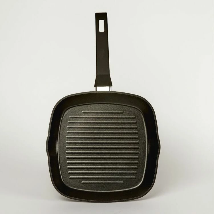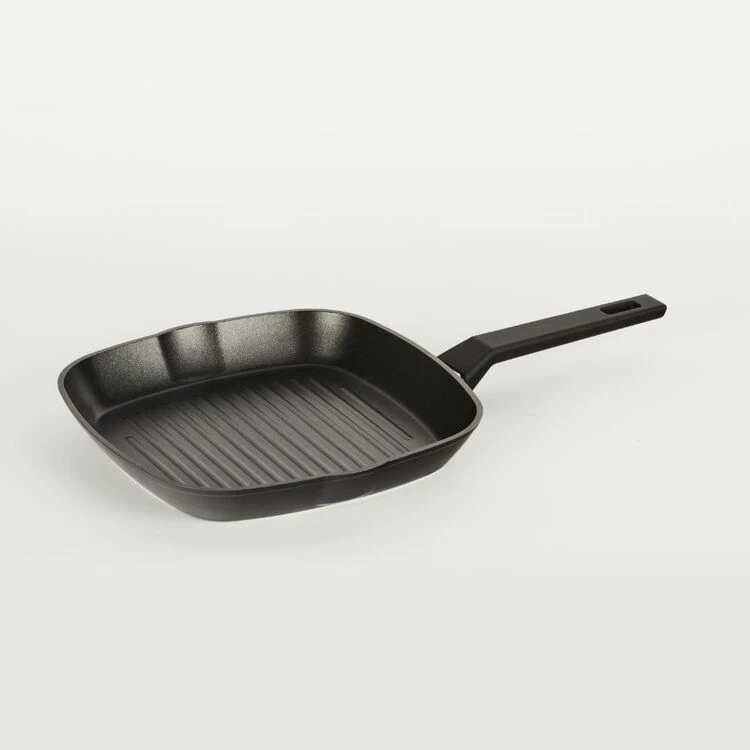 Grill up a delicious steak with the Swiss Diamond Deluxe Premium Forged Induction Square Grill Pan 28 cm. The body of this grill pan is made of forged aluminium known for its durability. Handles are designed with European-made soft touch and ergonomic bakelite handles. Triple-layer swiss nonstick coating technology helps to get food to slip off easily and is great for easy cleaning. They are compatible with induction cooktops and oven-safe up to 180°C / 360°F.