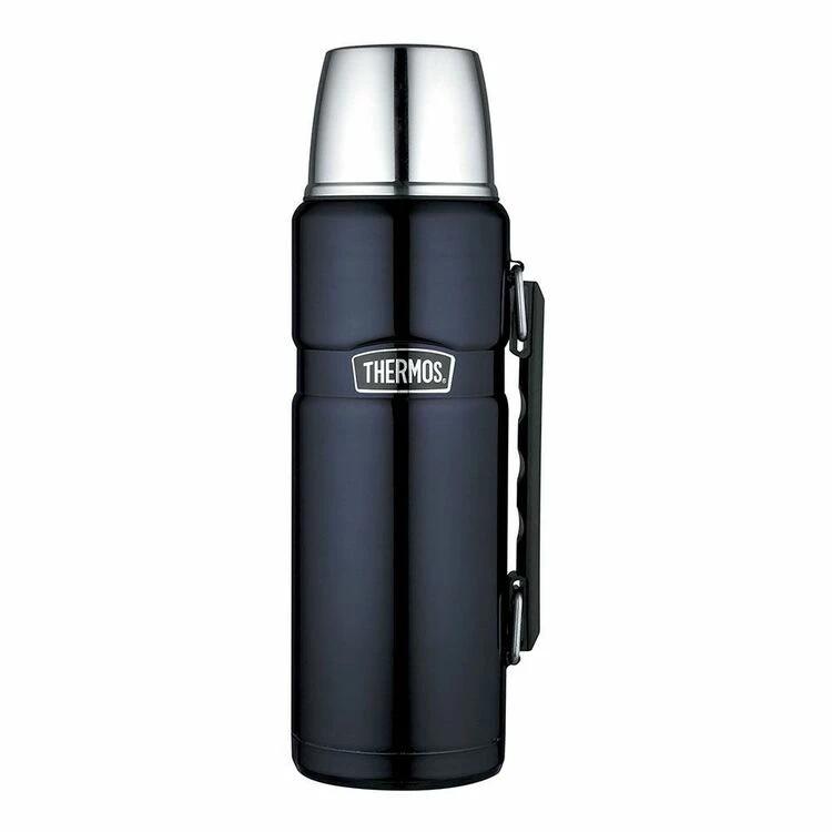 The Thermos Stainless King Vacuum Insulated Flask 1.2L Midnight Blue features a unique twist open stopper and insulated serving cup for ease of use. Designed with premium materials, this flask is sweat-proof and condensation-free, perfect for those always on-the-go.