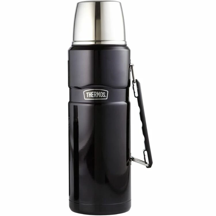 The Thermos Stainless King Vacuum Insulated Flask 2L Midnight Blue is perfect for coffee and tea on-the-go, hot or cold. Perfectly leak-proof and has an insulated lid that doubles as a drinking cup. Enjoy your beverage for longer as Thermos keeps liquids hot or cold for 24 hours. The double wall vacuum insulation provides maximum temperature retention and has an unbreakable stainless steel interior and exterior. Comfortable to hold with cool to the touch with hot liquids, sweat-proof with cold.